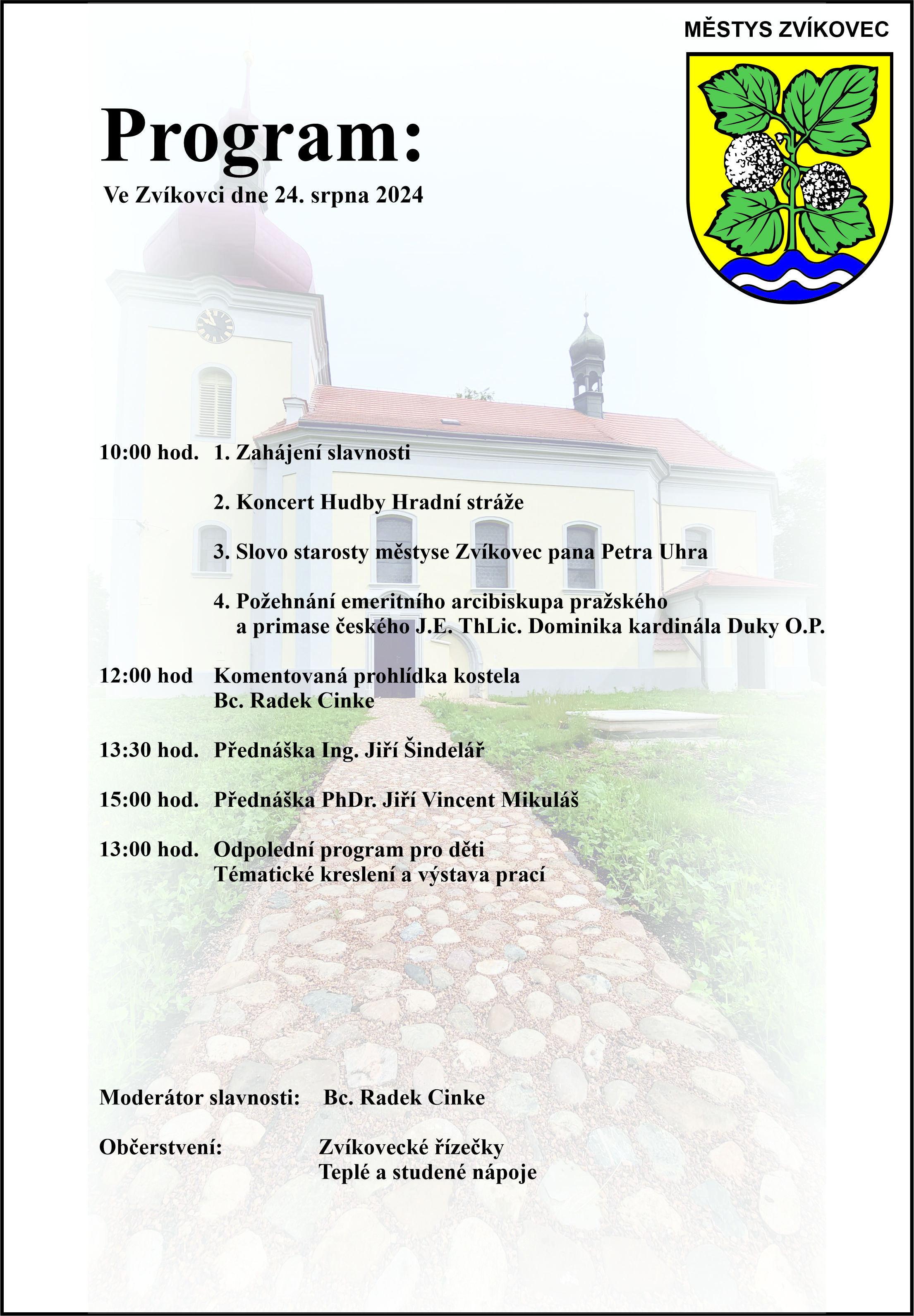 Na poděkování všem kdo se zasloužili bude prostor 24. srpna. Nyní všechny srdečně zveme a ze dvou překvapení prozradíme na závěr jedno a to druhé jen naznačíme. Vzácná hudební sbírka ze Zvíkovce vyjde tiskem ve zcela nové odborné studii u příležitosti otevření kostela již příští týden. Překvapení druhé - díky nejmodernějším technologiím spatří již od příští soboty návštěvníci Zvíkovce v kostele repliku památky, která byla lidským zrakům skryta více jak 400 let.