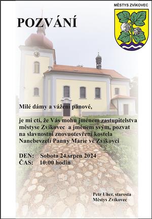 Znovuotevření kostela Nanebevzetí Panny Marie ve Zvíkovci