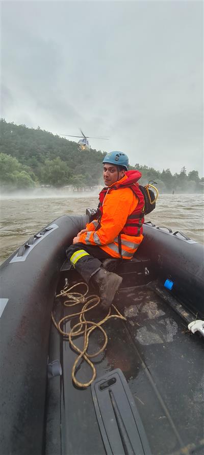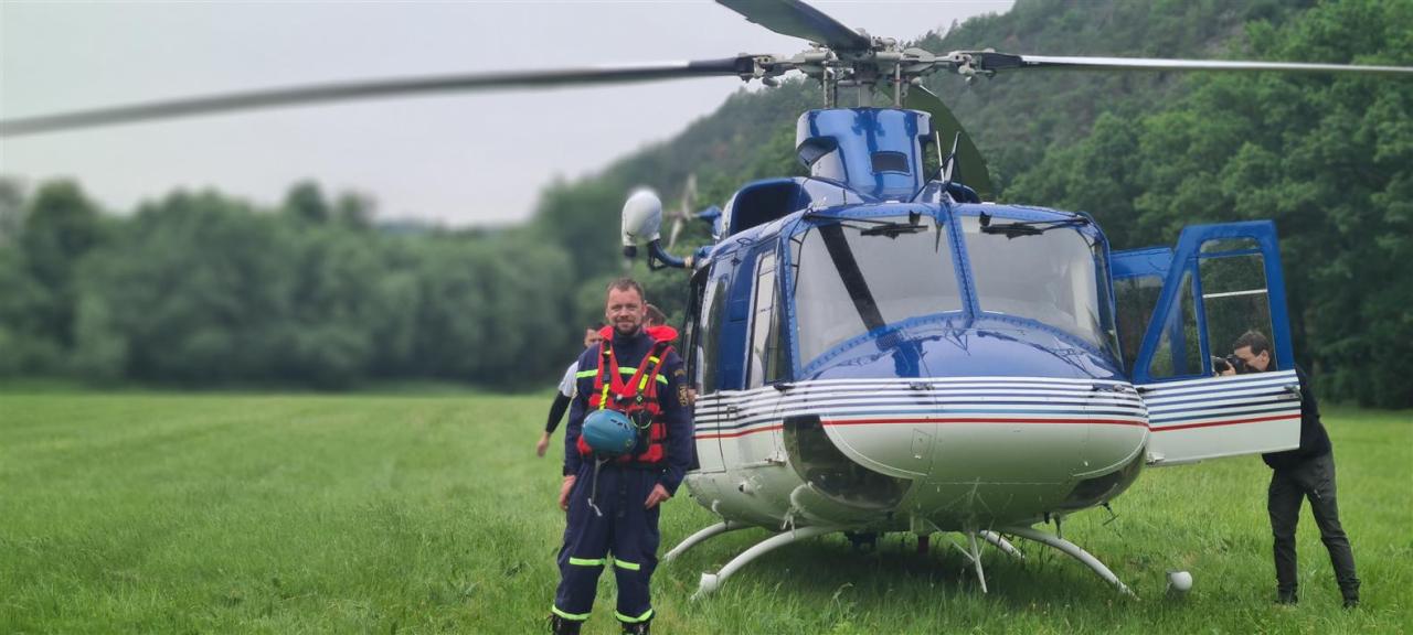 Spolupráce při výcviku záchrany osob z vodní hladiny s Leteckými záchranáři Středočeského kraje a Leteckou službou Policie ČR za pomoci vrtulníku Bell 412