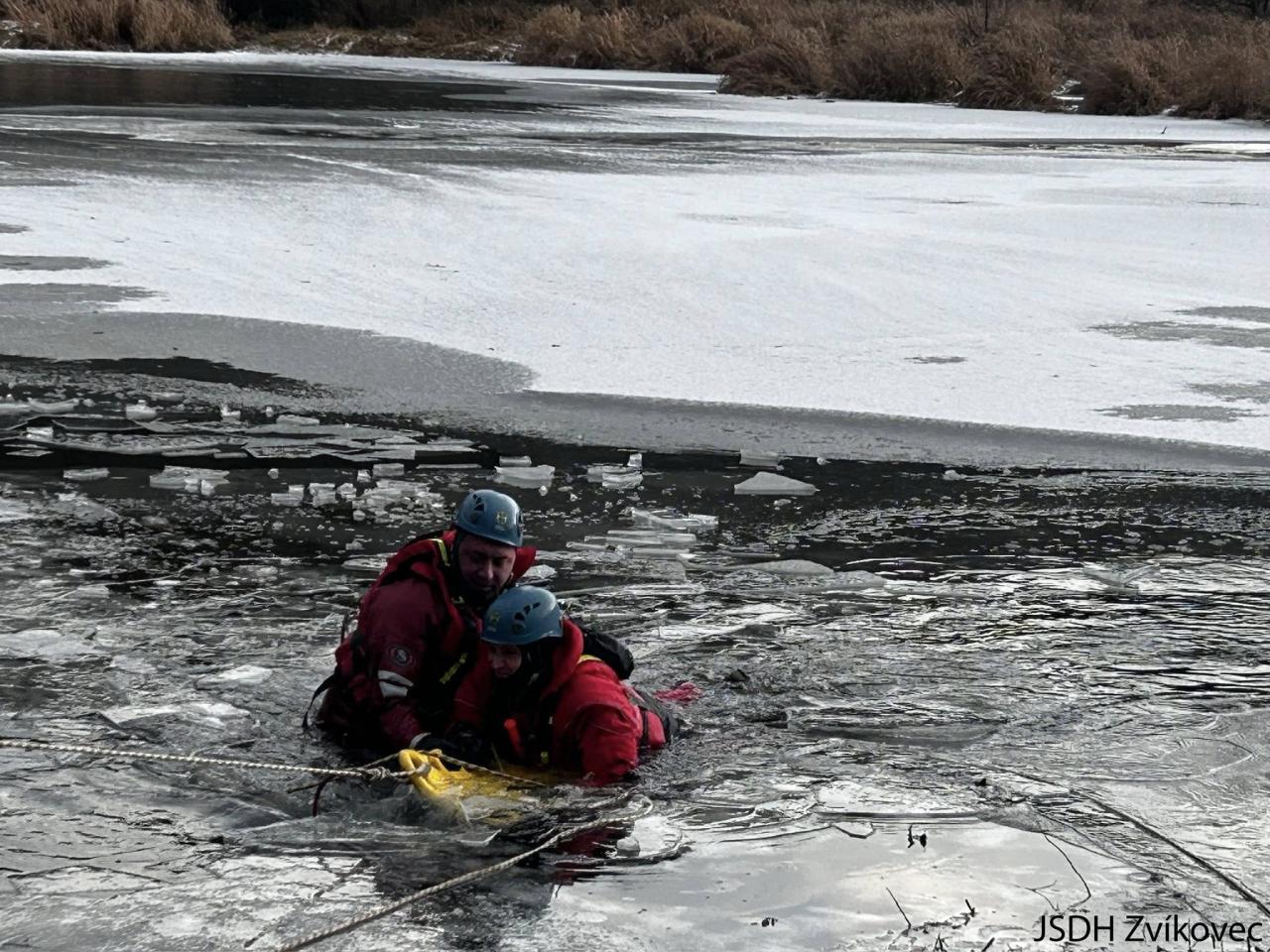 Praktický výcvik záchrana na zamrzlé vodní hladině