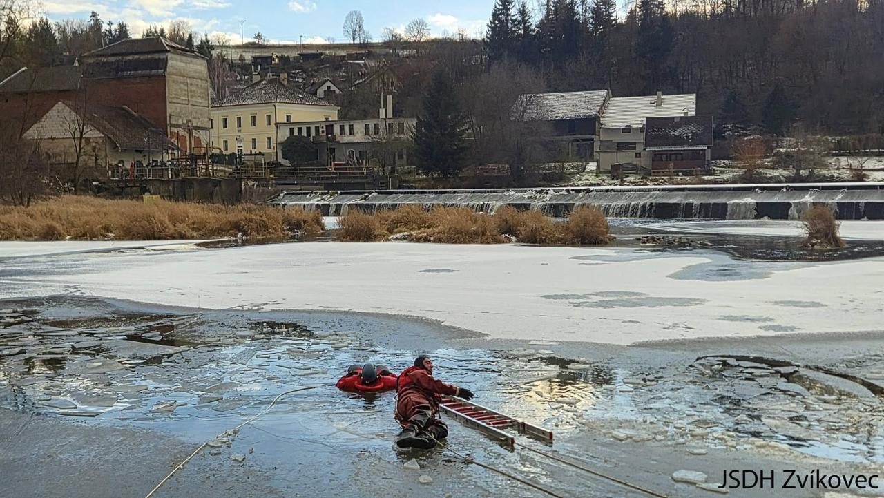 Praktický výcvik na zamrzlé vodní hladině proběhl 4. 1. 2026 na řece Berounce za účasti jednotky JSDH Zvíkovec. Cílem bylo procvičit pohyb po ledu a záchranu osob z ledové vody, práci s házecími prostředky i vzájemné jištění. Členové jednotky si vyzkoušeli bezpečný přístup k osobě v propadlé vodě, komunikaci v týmu a koordinaci zásahu v zimních podmínkách.