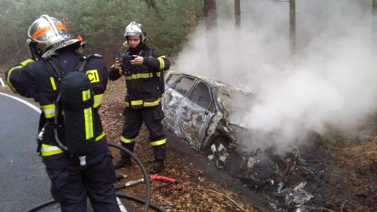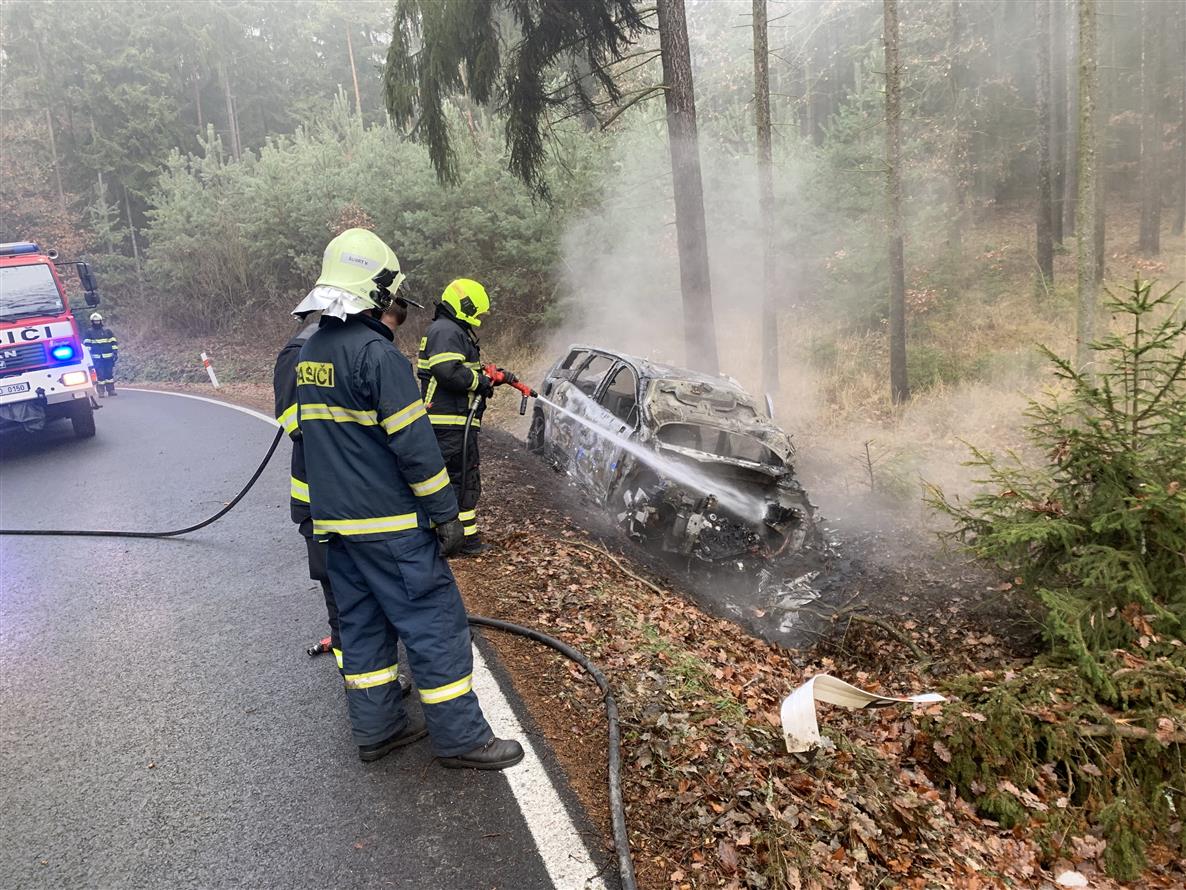 Požár osobního automobilu Zvíkovec - Chříč 5.12.2018